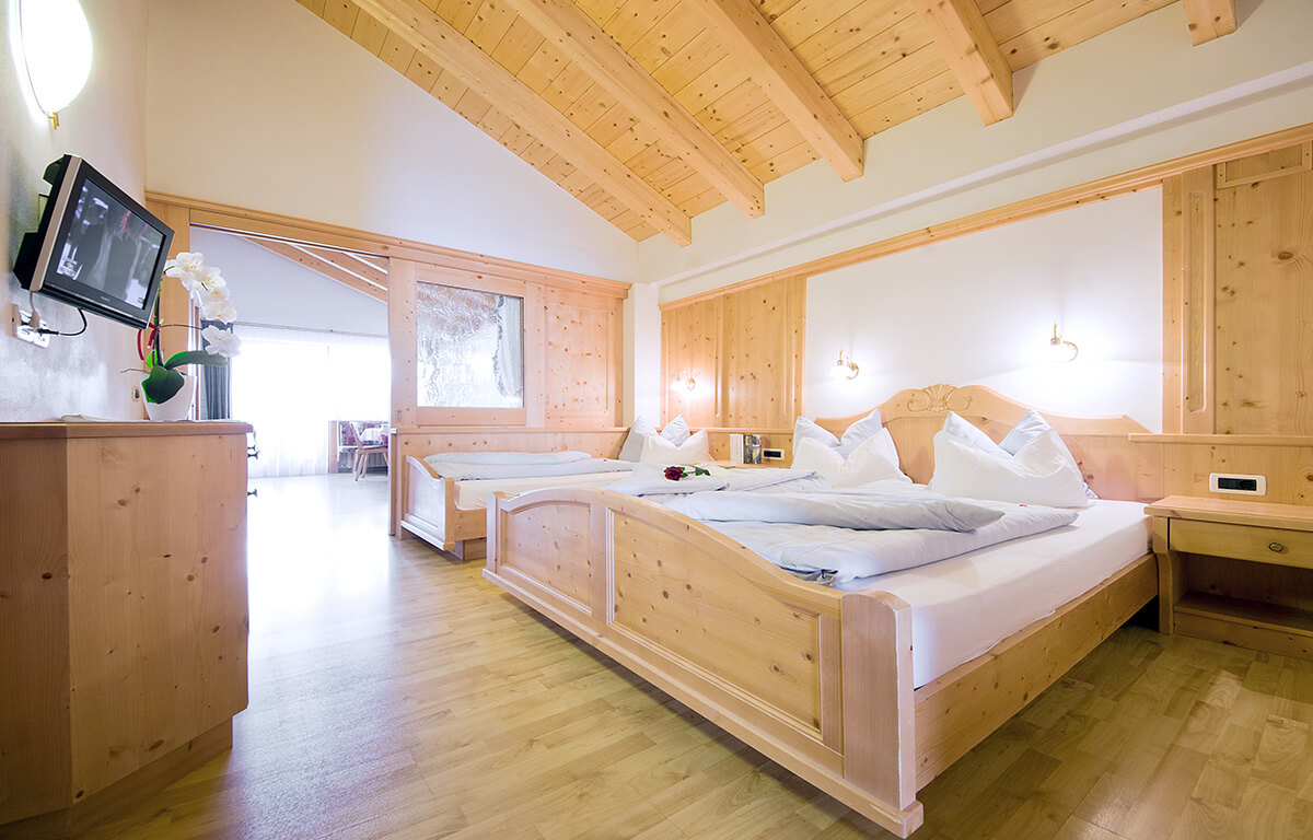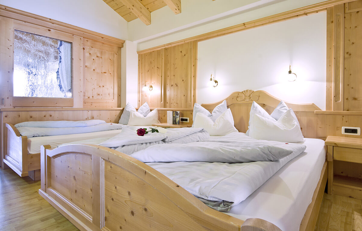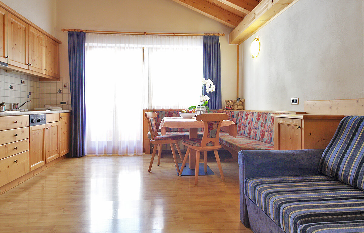 La camera da letto dispone di un letto matrimoniale e di un letto singolo, nel salotto invece si trova un comodo divano-letto per ospitare altre due persone. Il salone con cucina completamente accessoriata con lavastoviglie, frigorifero con cella freezer e piastra elettrica si affaccia ad un balcone che offre una magnifica vista sul massiccio del Ciampać.